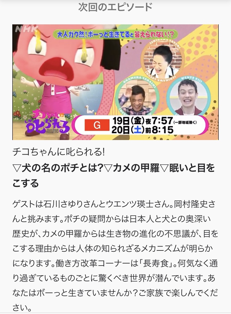 HOME >チコちゃんに叱られる!▽犬の名のポチとは?▽カメの甲羅▽眠いと目をこする 2020年6月19日(金) 投稿日:2020年6月17日 Twitter シェア Google+ Pocket B!はてブ LINE -
