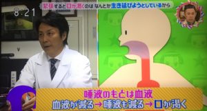 唾液は血液からできるので、血液が減ると唾液も減る。