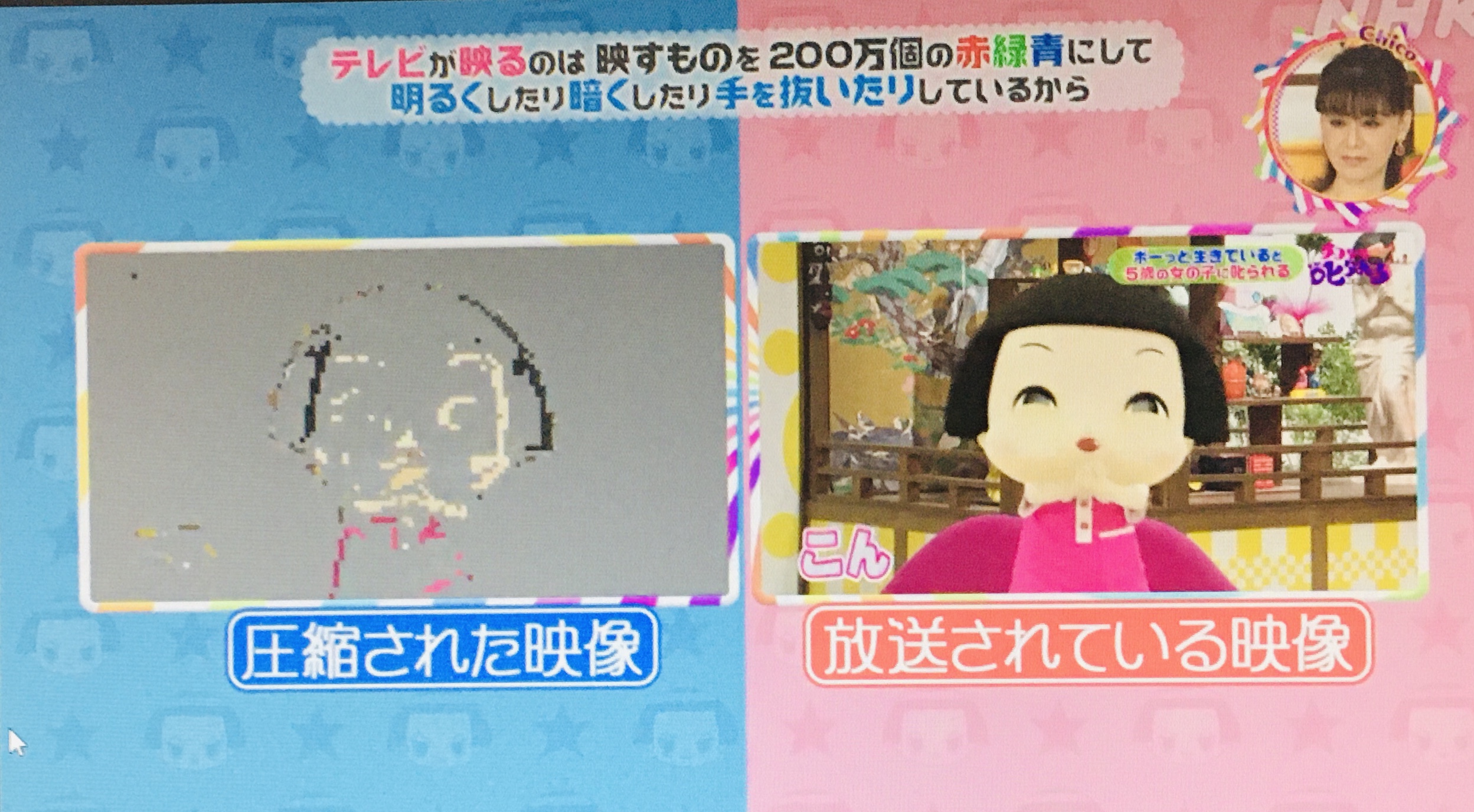 HOME >テレビってなんで映るの?→映すものを200万個の赤緑青にして明るくしたり暗くしたり手を抜いたりしているから 投稿日:2022年4月10日 Twitter シェア Google+ Pocket B!はてブ LINE -