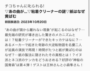 「チコちゃんに叱られる!」は、2023年10月20日金曜日、NHK総合 午後7時57分~
