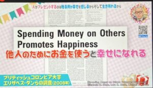 自分のために使うお金が増えても幸福度が上がりませんでしたが、他人のために使うお金が増えると幸福度が上がる人が多かったという結果に。