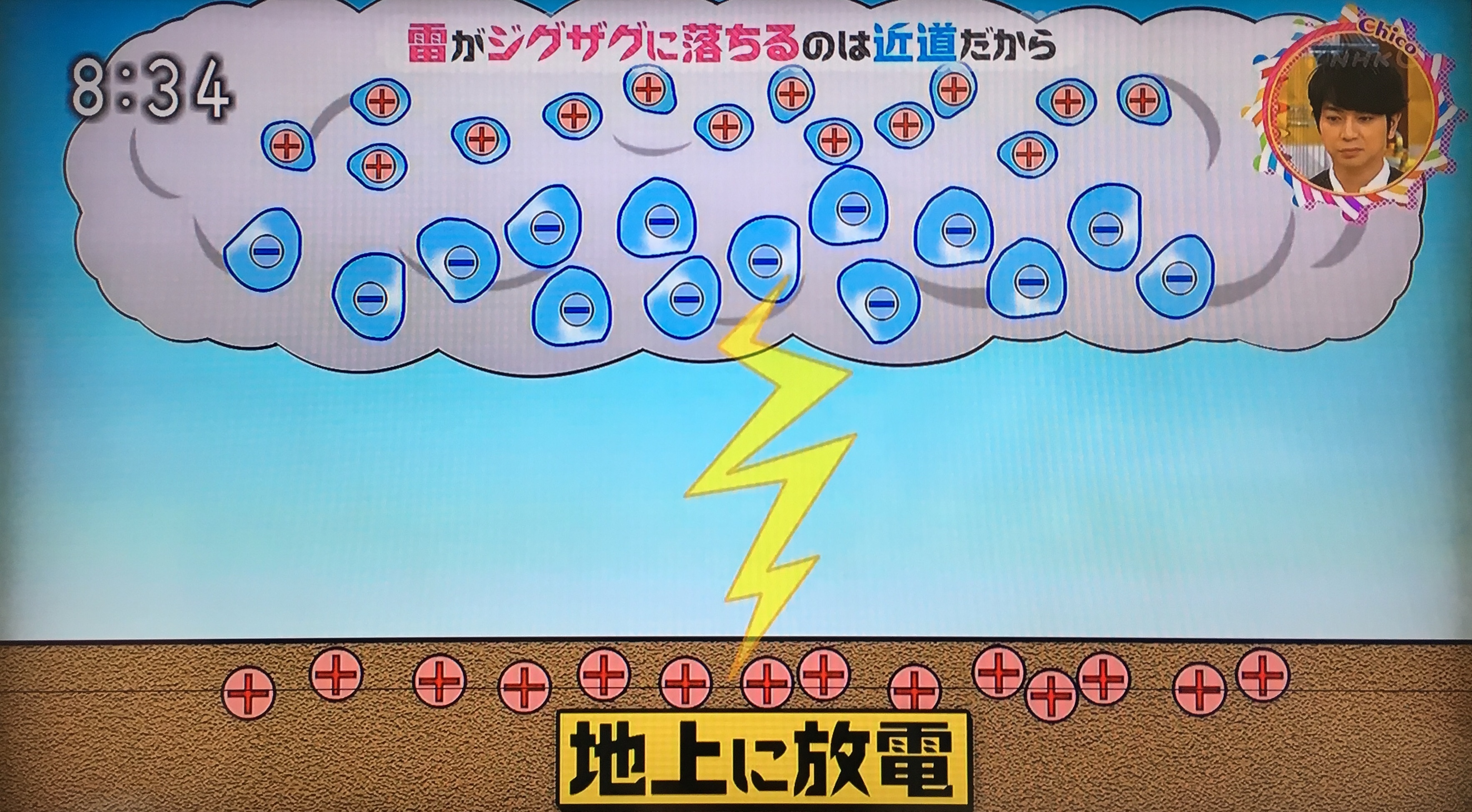 雷がジグザグに落ちるのはなぜ? → 近道だから。電気は空気の薄い所と湿度の高い所を選んで通過