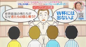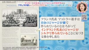 チコちゃんの答えは、「フランス代表がイングランド代表のユニフォームを欲しがったから。」