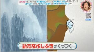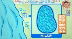滝が流れるとき、岩に当たって「水しぶき」が飛びますよね。