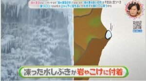 北風が水しぶきを舞い上げることで作られる造形美です。