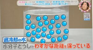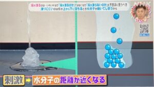 その衝撃で水分子同士がギュッと近づき、一気に結晶化して凍りつきます。