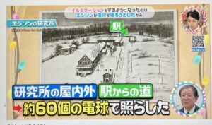 そして、研究所の周りや駅から続く道を約60個の電球で煌々と照らしたのです。