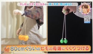 80㎝ぐらいのひもの両端に結びます。