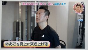 アゴを真っ直ぐ上に持ち上げます。