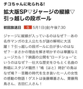 初回放送日NHK総合テレビジョン5月1日(金)午後7:30